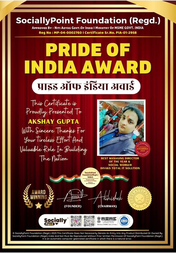 We are talking about Mr. Akshay Gupta, the proud resident of Asansol, West Bengal, and the Managing Director of DIVAKS TOTAL IT SOLUTION — an award-winning IT company known for its excellence and innovation.