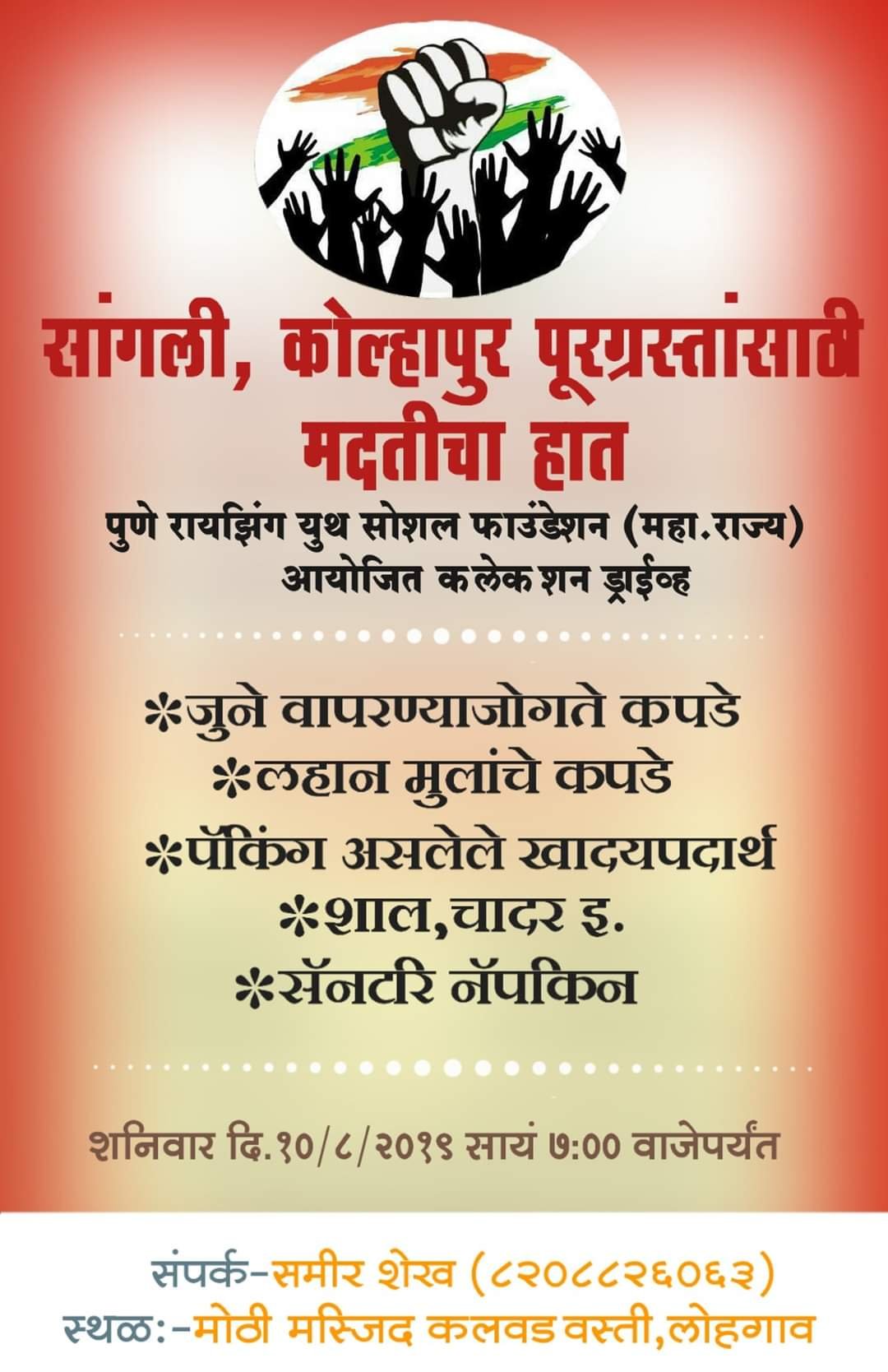 2021 की बाढ़ के दौरान, टीम ने नासिक और कोल्हापुर में जाकर 200 से अधिक परिवारों को राहत सामग्री पहुँचाई। स्वयं सजिद सैय्यद जी ने कहा था –